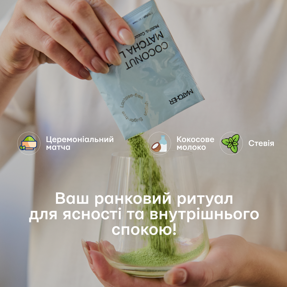 Матча Coconut Matcha latte дуже сподобалась, неймовірно смачна— ніжний, м’який смак, зовсім без гіркоти.
