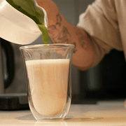 • Розігрійте 200-250 мл вашого улюбленого рослинного молока. Ми радимо – горохове BeSproud, кокосове, вівсяне, рисово-фундучне та соєве