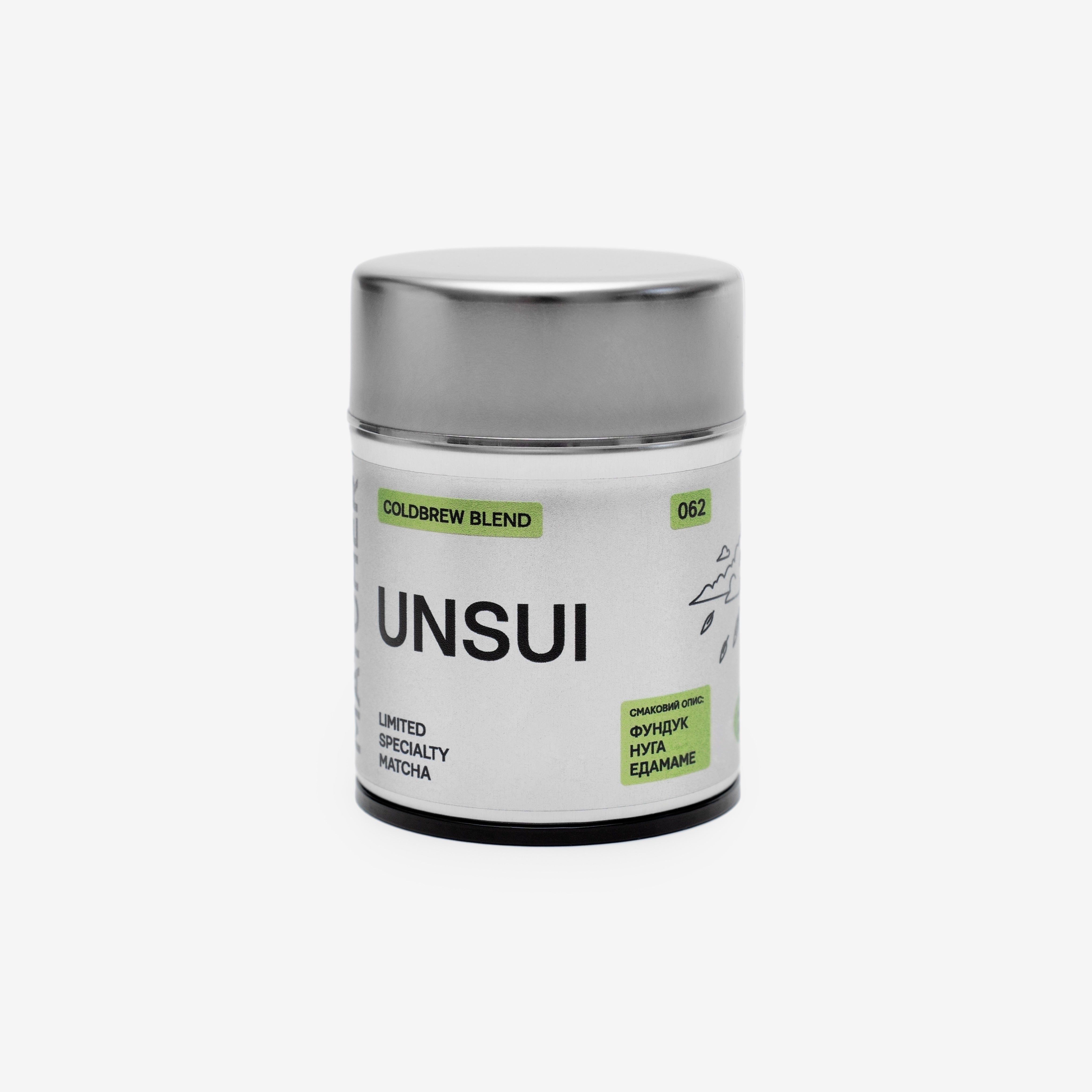 Унсуі – це сезонний бленд матча, створений із відбірних тенча весняних сортів Saemidori, Okumidori та Yabukita сезону 2025 року. Листя вирощують у гірських районах Шіґи, Кіото, Айчі та Нари, де різниця між денною й нічною температурою сприяє насиченню смаку й аромату. Після збирання тенча проходить легке обсмаження, а Унсуі має ще на ≈40 % довший етап просмажки. Завдяки цьому в напої відчуваються пряні та горіхові нотки, а сам бленд залишається щільним і насиченим.