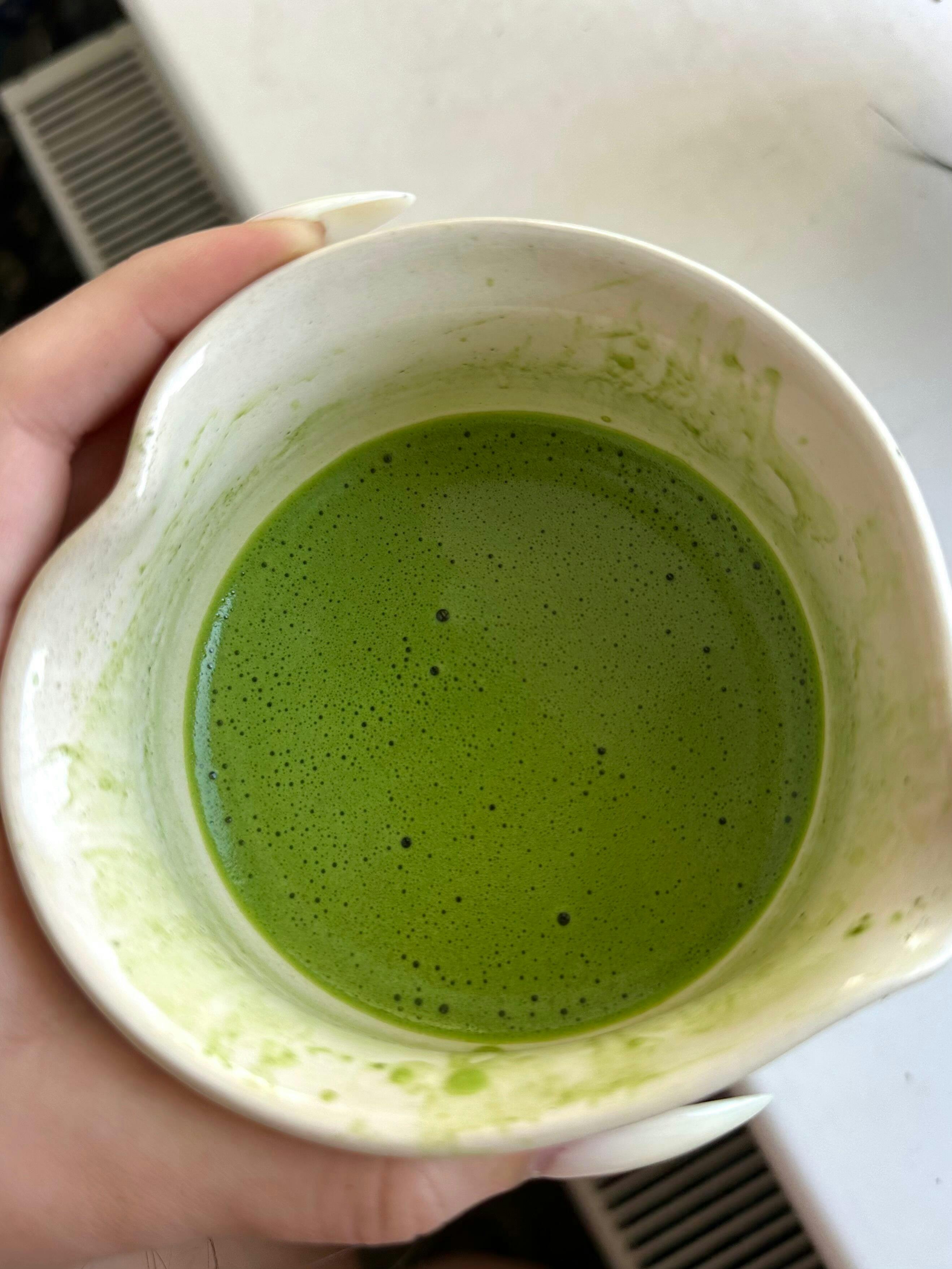 - Повільними, ніжними рухами, що нагадують вісімку, плавно розітріть бамбуковим вінчиком Часен напротязі 2-3 хвилин до ніжної однорідної тексутури